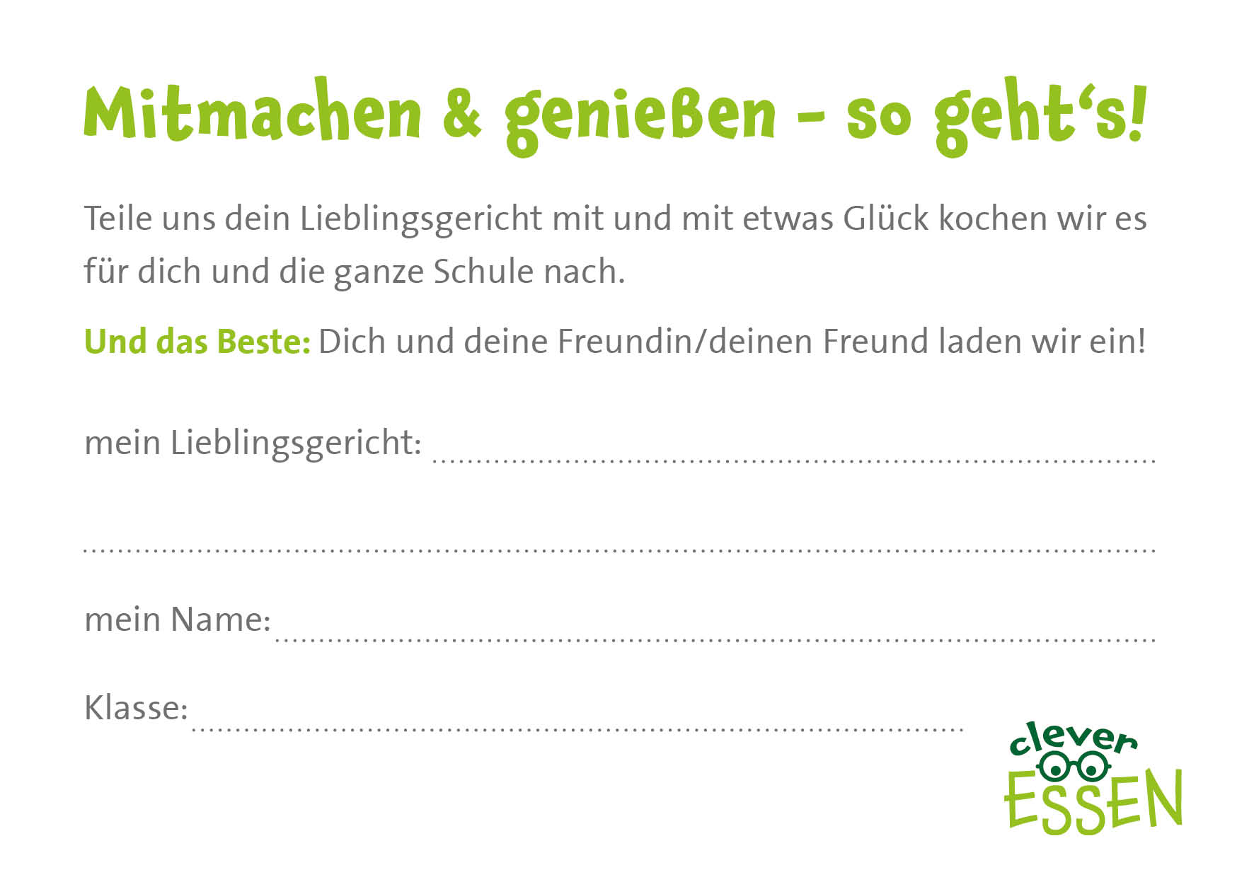 Kinder und Jugendliche essen am liebsten, was ihnen gut schmeckt. Sie sind Lieblingsesser und Trendscouts. Ihre Essgewohnheiten ändern sich mit jeder Altersgruppe. Wir kennen uns aus mit den speziellen Wünschen unserer Gäste, denn wir fragen nach. Gesucht wird das Lieblingsessen. Regelmäßig haben die Schülerinnen und Schüler die Gelegenheit uns mitzuteilen, was sie gerne essen.